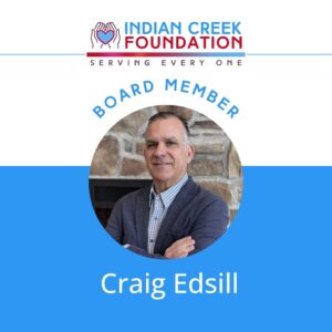 Craig Edsill joined the Indian Creek Foundation Board of Directors shortly after his very first visit. A long-time resident of the area, Craig had driven past Indian Creek many times and was familiar with our community events. Then a friend invited him for a tour to explore the possibility of becoming a Board member, and that is all it took for Craig to decide this is where he wanted to serve.